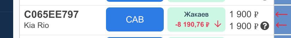 Последний столбец содержит информацию о ставке авто из тарифной сетки (сверху) и о сумме последнего списания по аренде в Яндексе (снизу).